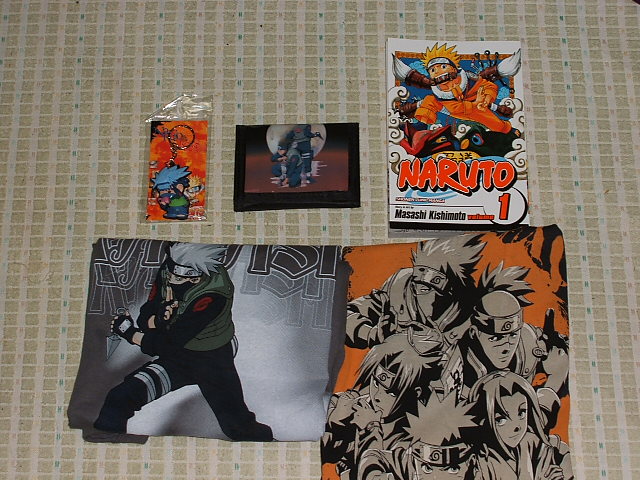 右上、ナルトのコミック英語版、その下は2枚ともTシャツです。