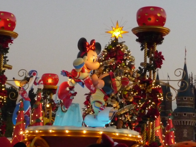 ミッキーとウォルトの像をパートナー像と呼ぶんですが、このパートナー像越しに見るクリスマスツリーが個人的に好きでvv